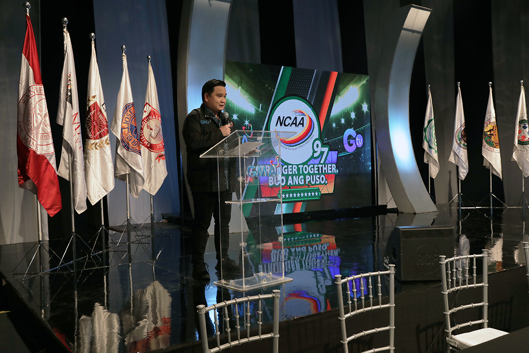The National Collegiate Athletic Association (NCAA), hosted this year by De La Salle-College of Saint Benilde, welcomed Season 97 with a media conference last March 19 at GMA Network Center. Through a video message, Benilde President Br. Edmundo Fernandez FSC thanked GMA Network, the official broadcast partner of the games. GMA Network, Inc. Chairman and CEO Atty. Felipe Gozon delivered a message of welcome.